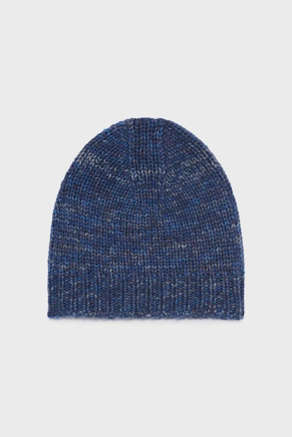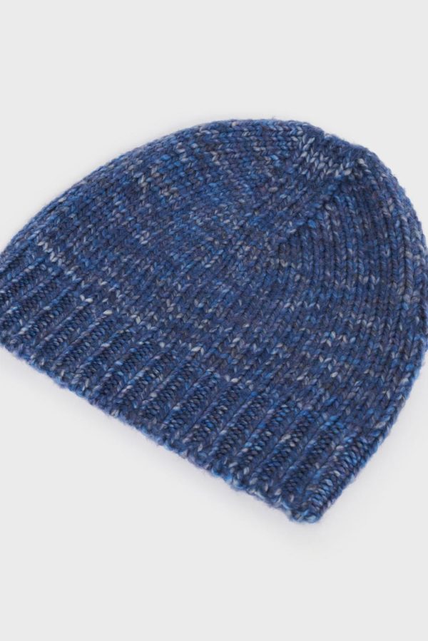 Confectionné en 100% laine mérinos chinée, le bonnet Gaïa est l’accessoire idéal de l’hiver. Il est proposé en bleu.