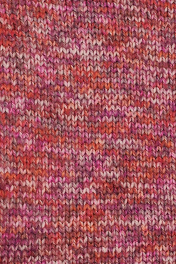 Echarpe en laine chinée dans des tons de rose et orange. Confectionné en 100% laine mérinos au toucher doux.
