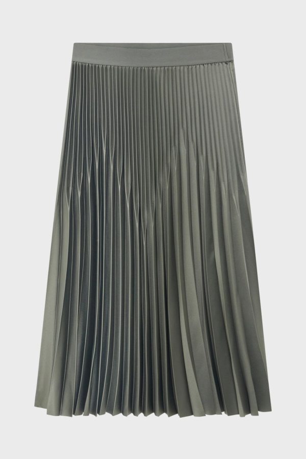 Jupe Midi Satinée Plissée Vert Kaki BERANA Femme | Jupes Pablo
