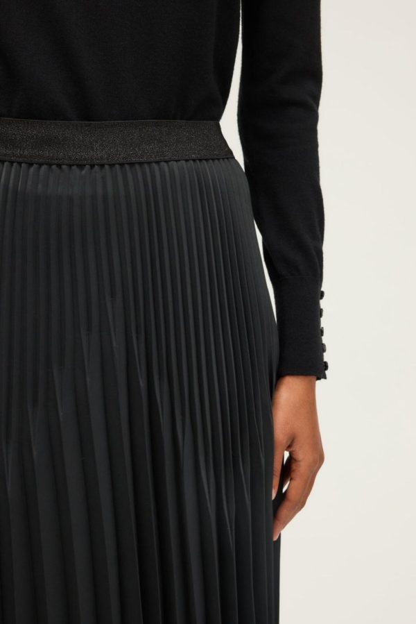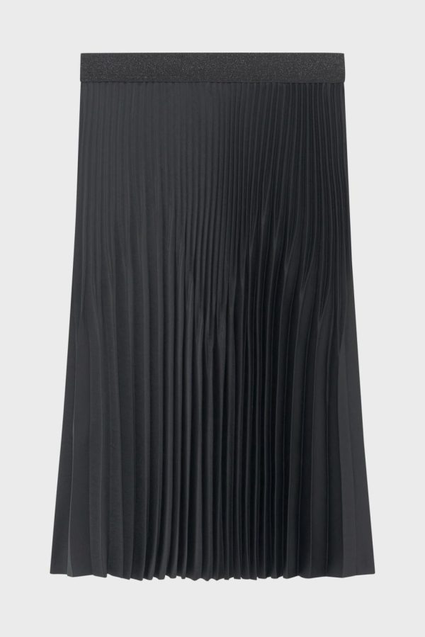 Jupe plissée noire au tomber féminin, à porter casual ou sophistiquée. Taille élastiquée pailletée pour allier le style au confort.