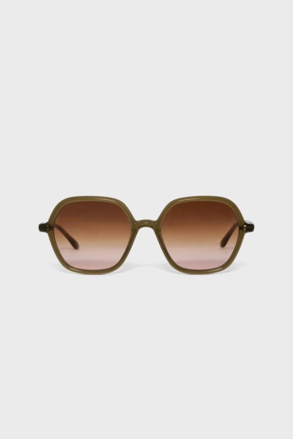 Lunettes de soleil à la monture carrée kaki et aux verres fumés dans un esprit chic et vintage.Protection à 100% contre les rayons UV. Elles sont proposées dans leur étui noir orné du sigle Pablo.
