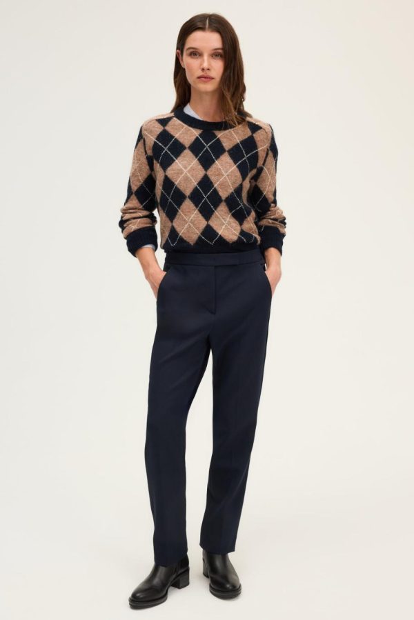 Pantalon droit au dos élastiqué pour un plus grand confort. A porter avec la veste assortie pour faire tailleur. Coloris bleu marine chic et intemporel.