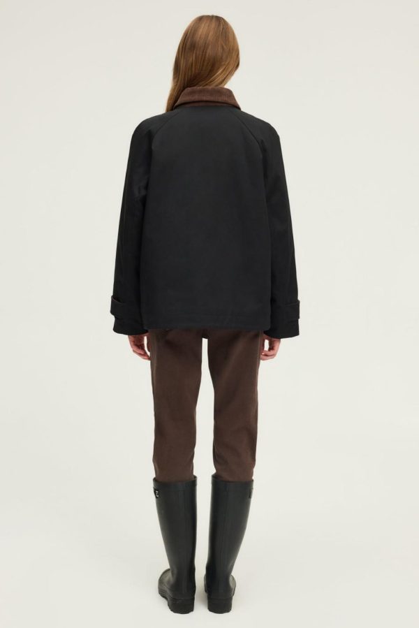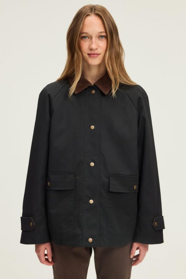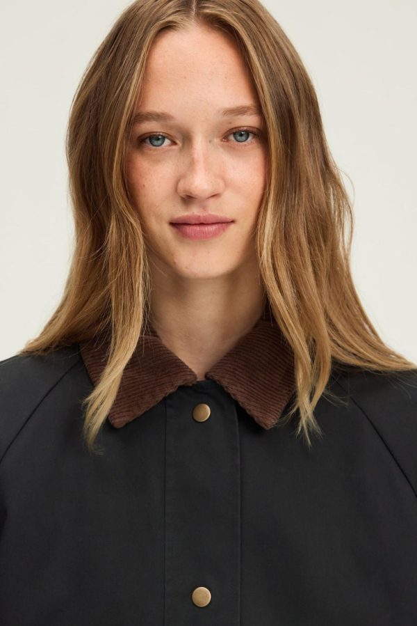 Alliance parfaite du fonctionnel et du style pour cette parka bleu marine au col en velours côtelé. Confectionnée en coton et polyester technique, elle sera idéale comme vêtement d’entrée de saison.