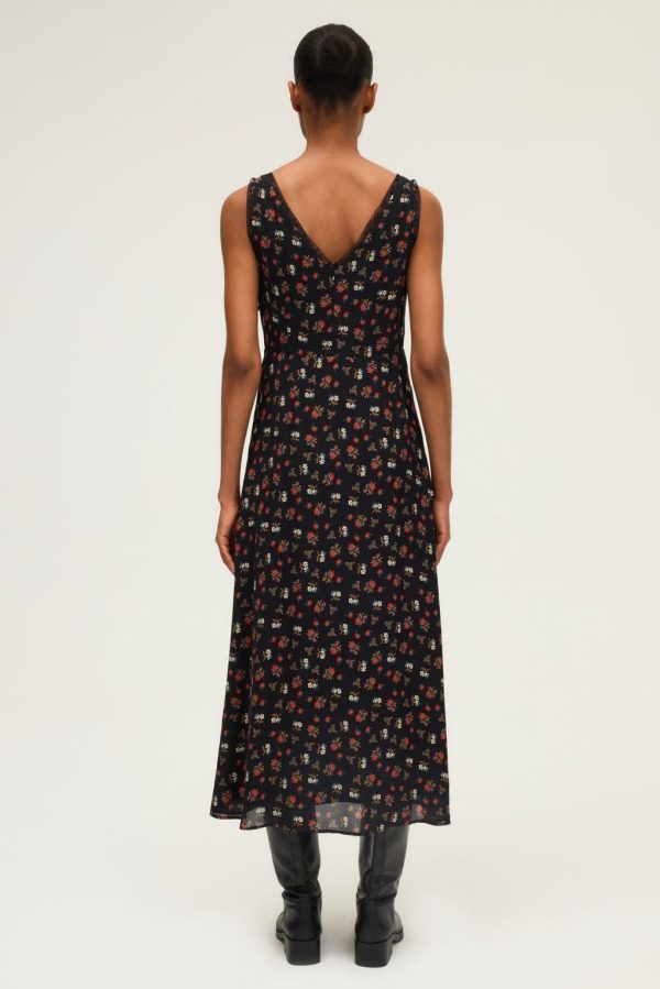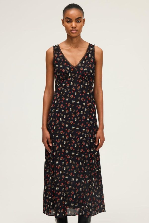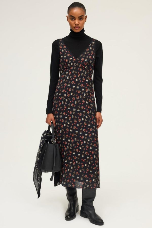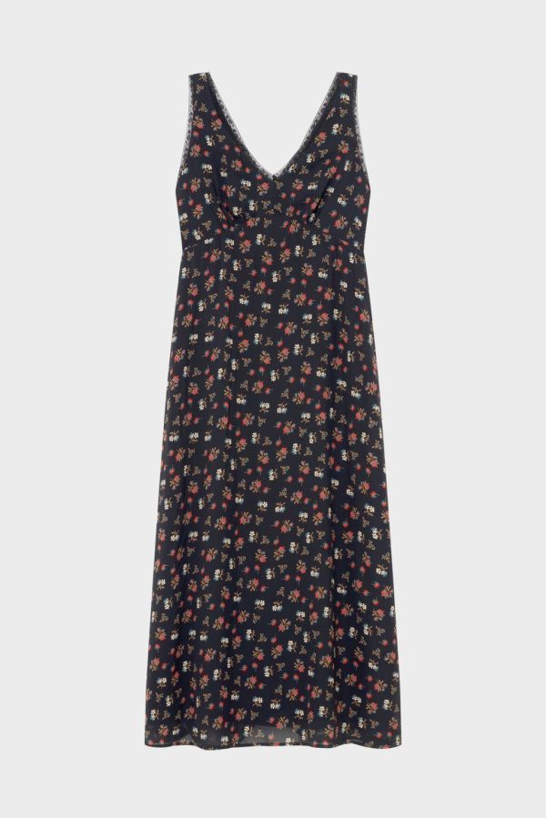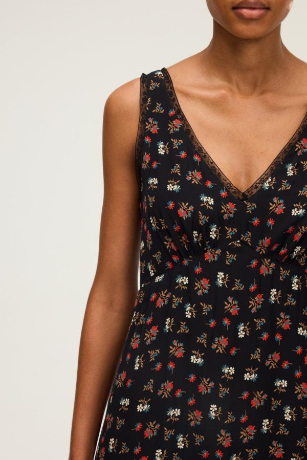 Sa forme qui souligne la poitrine et ses détails de dentelle offrent à la robe Louella un côté lingerie chic. Confectionnée dans une matière fluide au toucher soyeux, elle suit les mouvements du corps de manière élégante et sensuelle. Elle est ornée de fleurs multicolores sur fond noir.