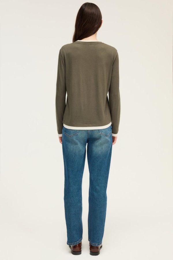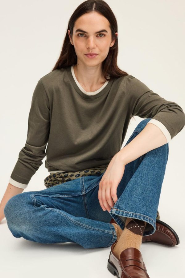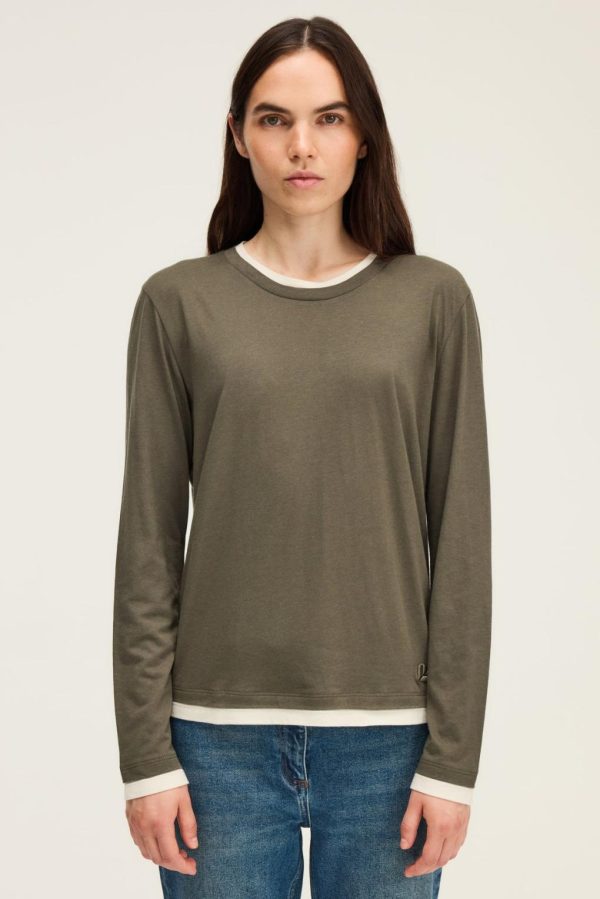 T-shirt Trompe-l’œil Vert Kaki HALIMA Femme | Tops & T-shirts Pablo